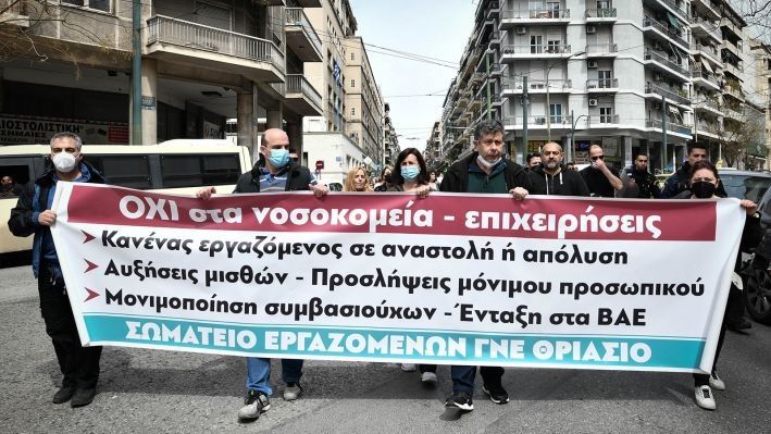 Health workers in Greece stopped working for three hours and took to the streets to protest new pro-privatization legislation promoted by the government