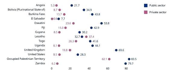 In the health sector, workers have been protesting for safe staffing, safer workplaces, and better quality of care since the beginning of the pandemic. These requests have been echoed by health workers in both the public and private sectors. However, ILO data shows that workers in private facilities remain less unionized than their counterparts in the public sector. Considering that higher unionization rates have been associated with decreased infection and mortality rates during the pandemic, and recognizing that organized labor is more likely to efficiently support workers during strikes and other actions, the ILO data suggests that health workers in the private sector are more exposed to different forms of exploitation.