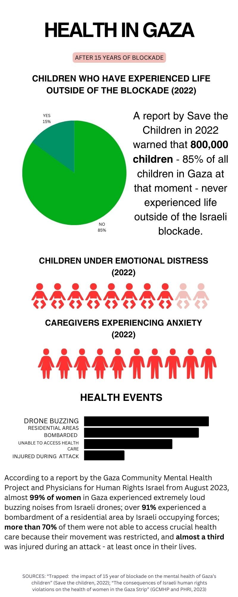 The attack on Al-Ahli Arab Hospital and the refusal to allow sufficient food, water, and medical supplies into the besieged strip are among the latest incidents in a long series of Israeli attacks on the health of the people in Gaza. Thousands of children have never experienced life outside of the blockade, and their mental and physical health is forever marked by the occupation. Family members have been denied permits to accompany their loved ones to receive essential treatments. Health workers have worked under a permanent threat of physical attacks and intimidation looming over their heads. Today, as Israel continues its bombardment of the Gaza Strip and allows only 20 trucks of aid to enter, the same health workers continue to stand by their patients and refuse to leave hospitals and health centers.